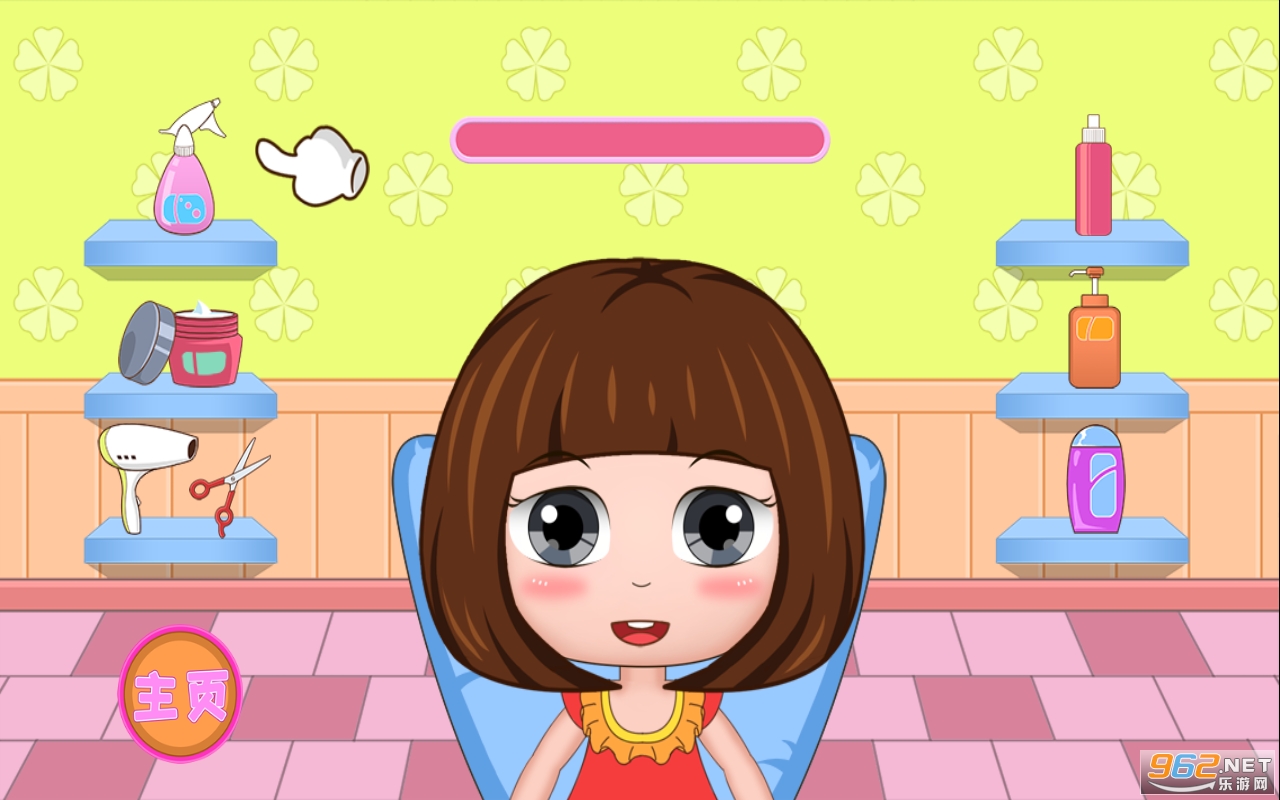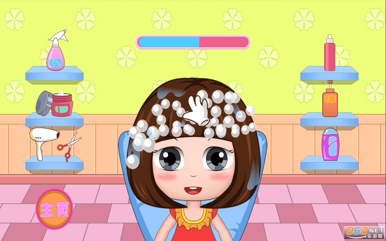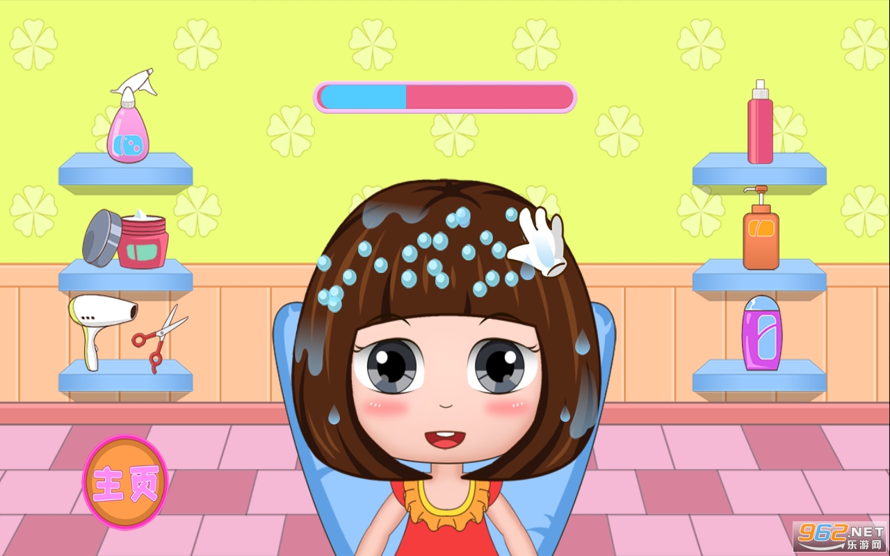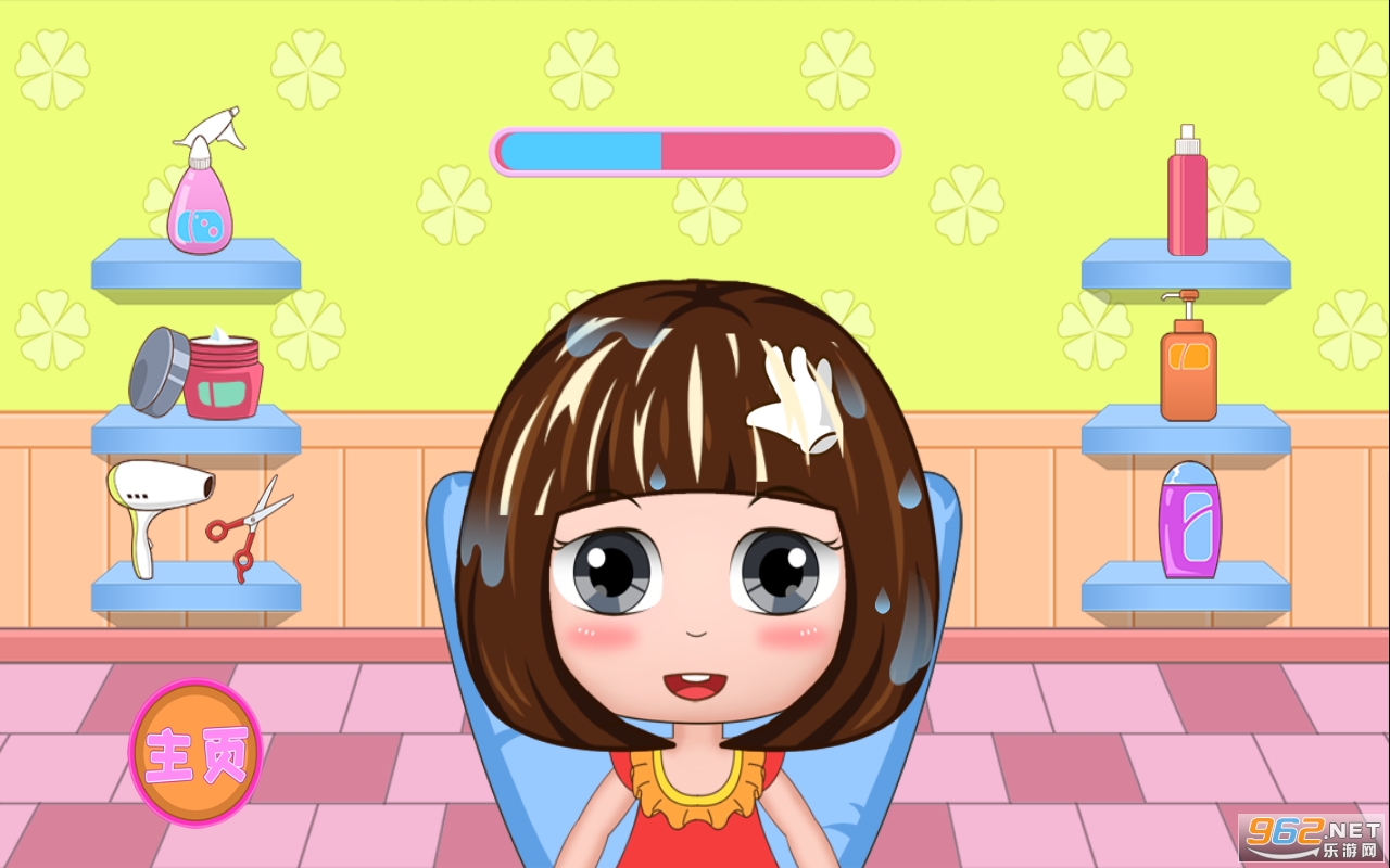 -- 洗头、染发和剪头发,为公主贝贝提供一个舒服的头发护理。