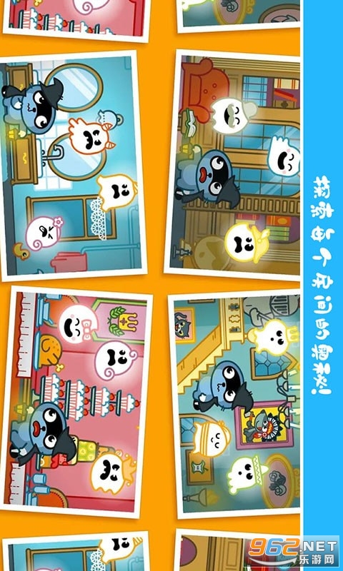 魔法师和他的朋友们在一座阴暗的房屋里玩把戏或招待客人。但这座房屋却被顽皮和恶作剧的幽灵萦绕。魔法师必须克服恐惧,进入房屋把糖果拿回来。帮魔法师从恶作剧幽灵手中夺回房屋。探索房屋的不同房间:客厅、厨房、卧室…找到隐藏在装饰中的幽灵。记住幽灵的位置,匹配它们使之消失。这座房屋没有幽灵萦绕。这是你的糖果!
