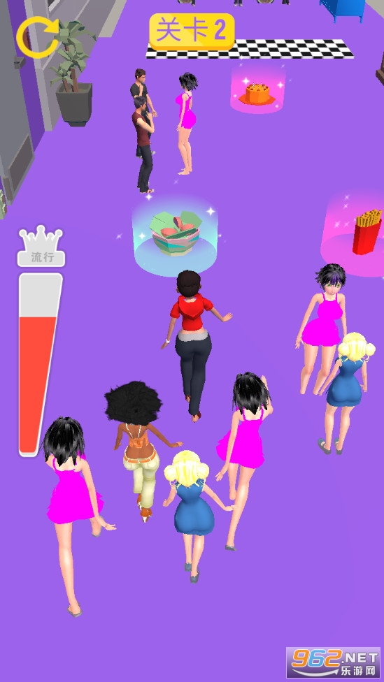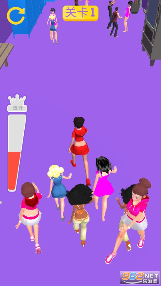 游戏玩法非常的简单,滑动屏幕控制人物左右移动即可,收集青色光柱,避开红色光柱和周围的人,提高自己的流行属性,吸引更多的女人加入,成为女皇,喜欢的朋友可以下载试试。