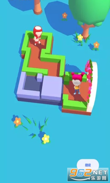 3、摆放方块走到另一面的小女孩身边,你需要通过各种方块移动,帮助自己达到重点。
