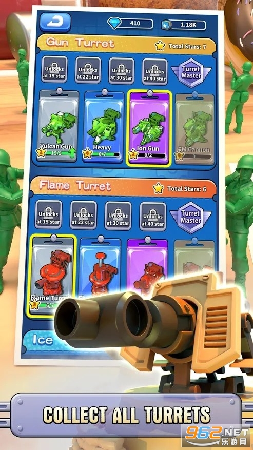 《军人防御合并炮塔》(Army Men Defence: Merge Turrets)是一款清新卡通风格的玩具兵人防御塔防游戏,在这款游戏中玩家将完成一场场有趣的挑战,还有着多样的玩法和挑战等待着你,游戏的操作简单容易上手,还在等什么呢?赶快下载体验吧!