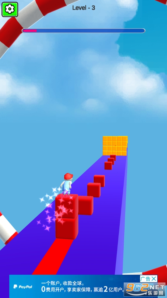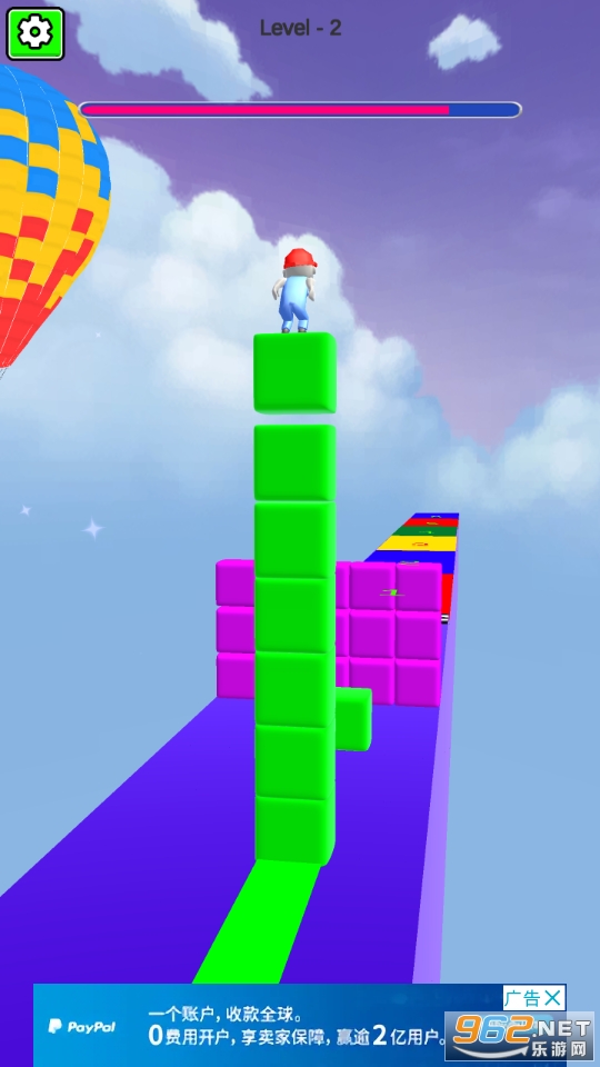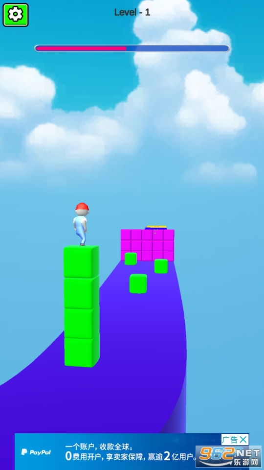非常好玩的一款收集积木进行跑酷竞技的休闲游戏,玩家在游戏中只需要控制好角色前进的方向收集更多的方块就可以了,如果方块收集的不够就会死亡哦!