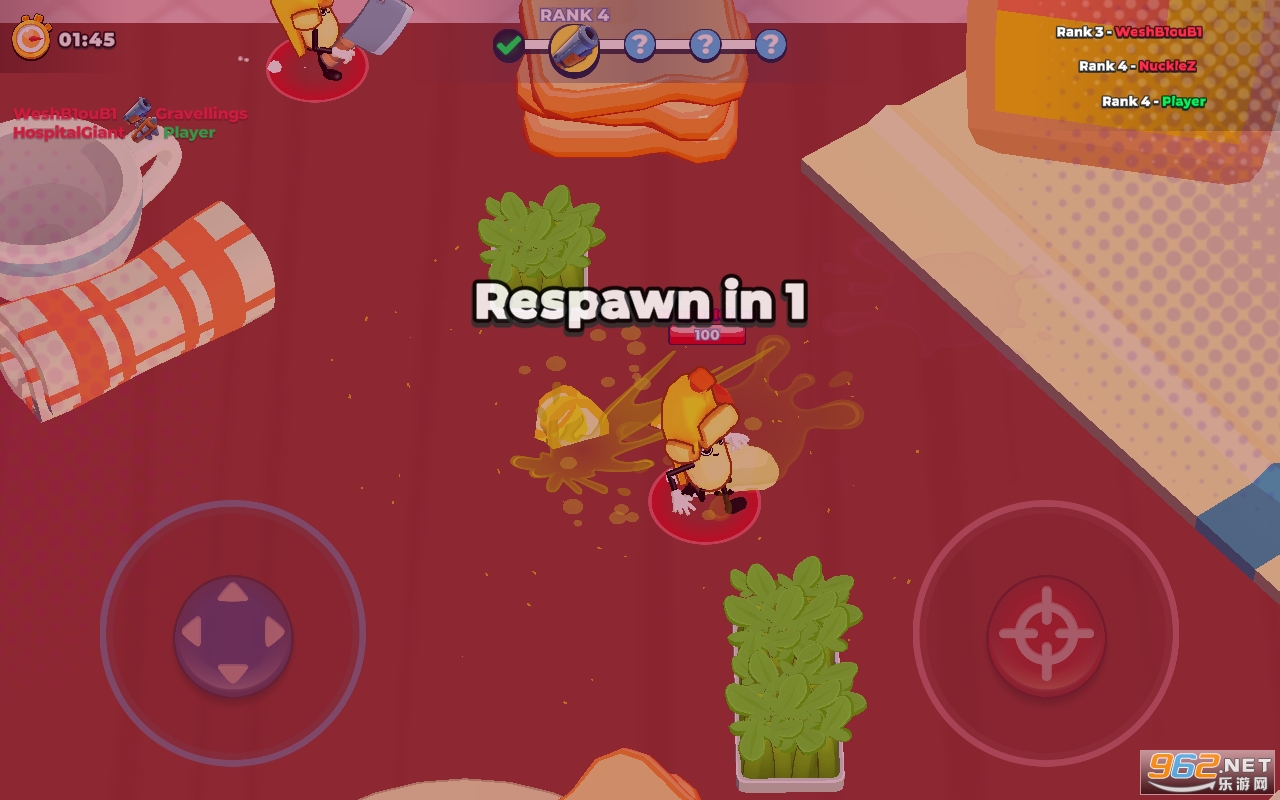 3、在对手最不受保护时隐藏并寻找他们,连续杀戮或失去进步。每次你被杀,你都会回到你以前的武器!