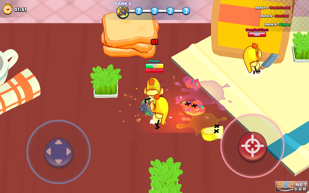 1、新颖有趣的卡通大作战游戏题材,带领美食小队勇敢的战胜厨具怪兽;