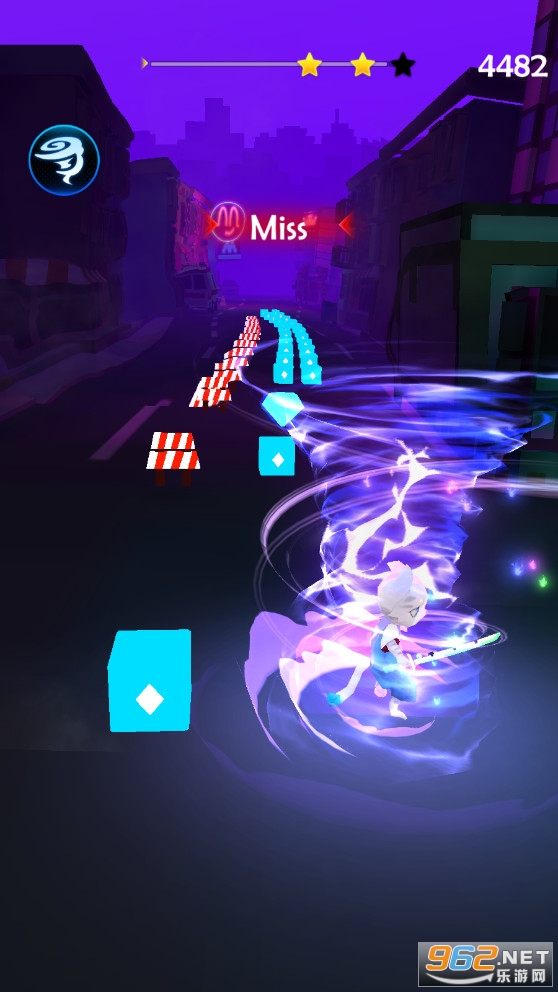 感受节拍的律动,向左或者向右滑动,避开路上的所有障碍物,并挥动手中的武器切开方块;