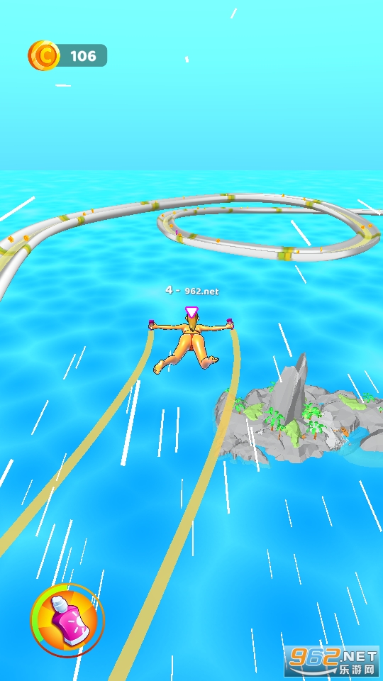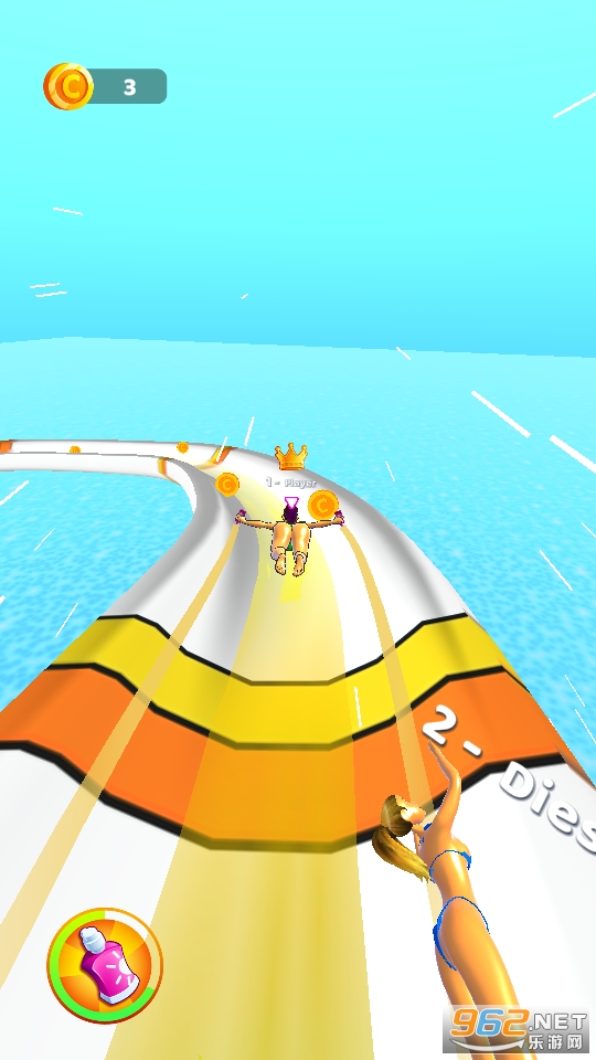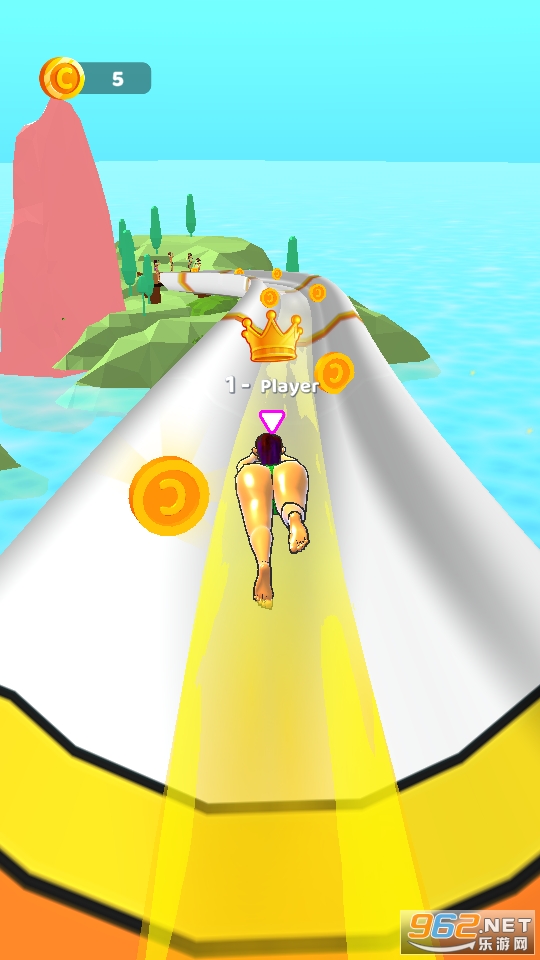 非常有趣的一款休闲游戏,玩家在游戏中进行一场滑滑梯的比拼较量,可以选择抄小路,但是一定要做好预判,顺利的飞跃到下面的赛道上!