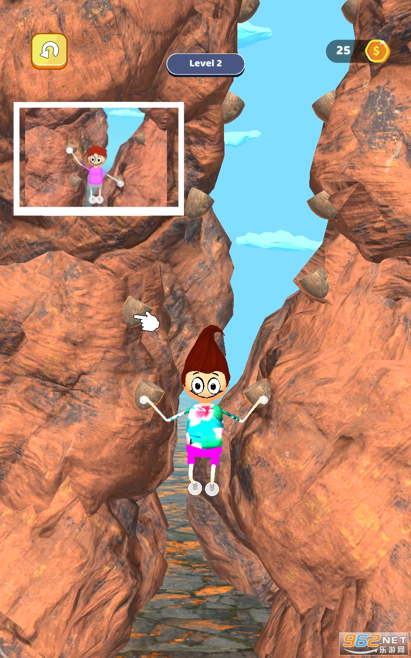 《攀爬救援游戏》是一款很轻松的爬山闯关游戏,控制人的手抓住正确的位置变成绿色后即可进行攀爬,基本没有难度而且画面十分的搞笑,每一关都有全新的皮肤外形,用来打发时间刚刚好,感兴趣的亲们赶紧下载吧。