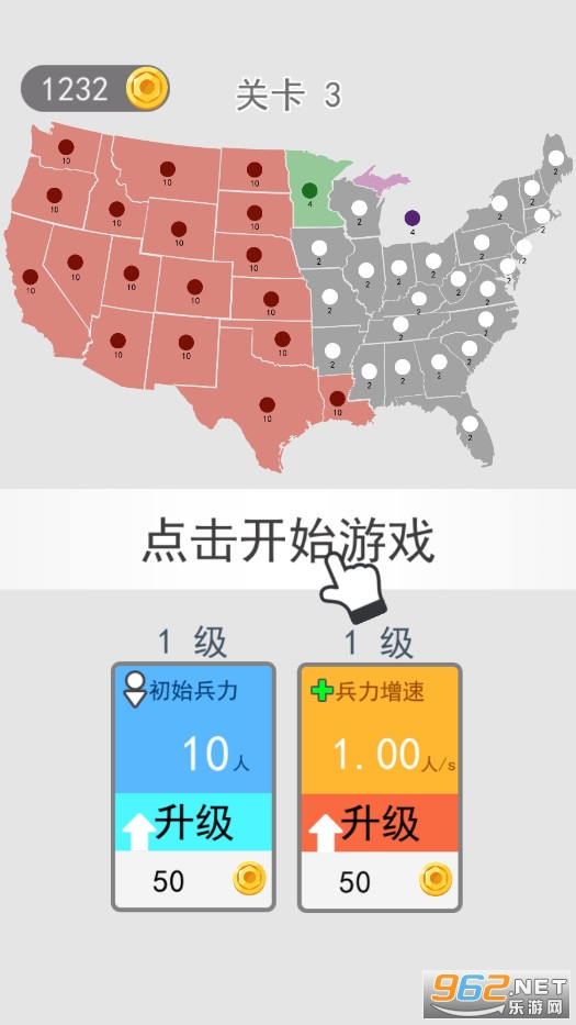 操作非常简单,玩家只需点击存在兵力的区域再滑动到希望占领的地区,兵力就会主动出击前往攻占新的地区。