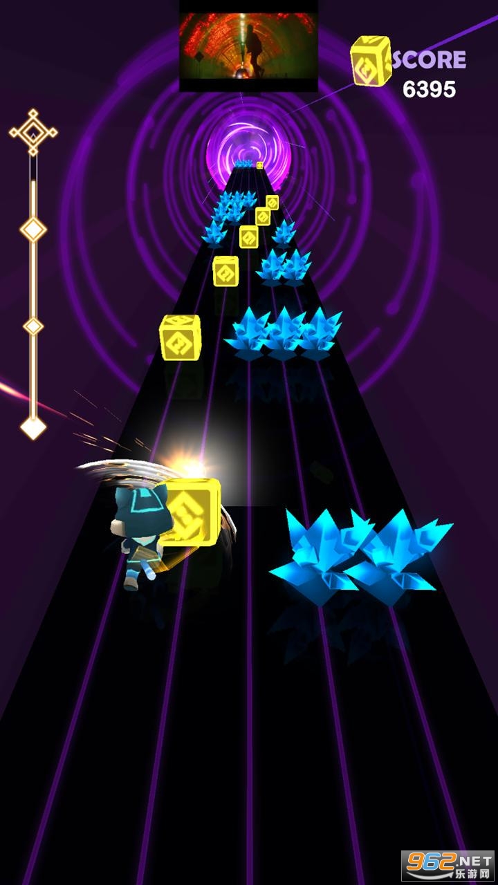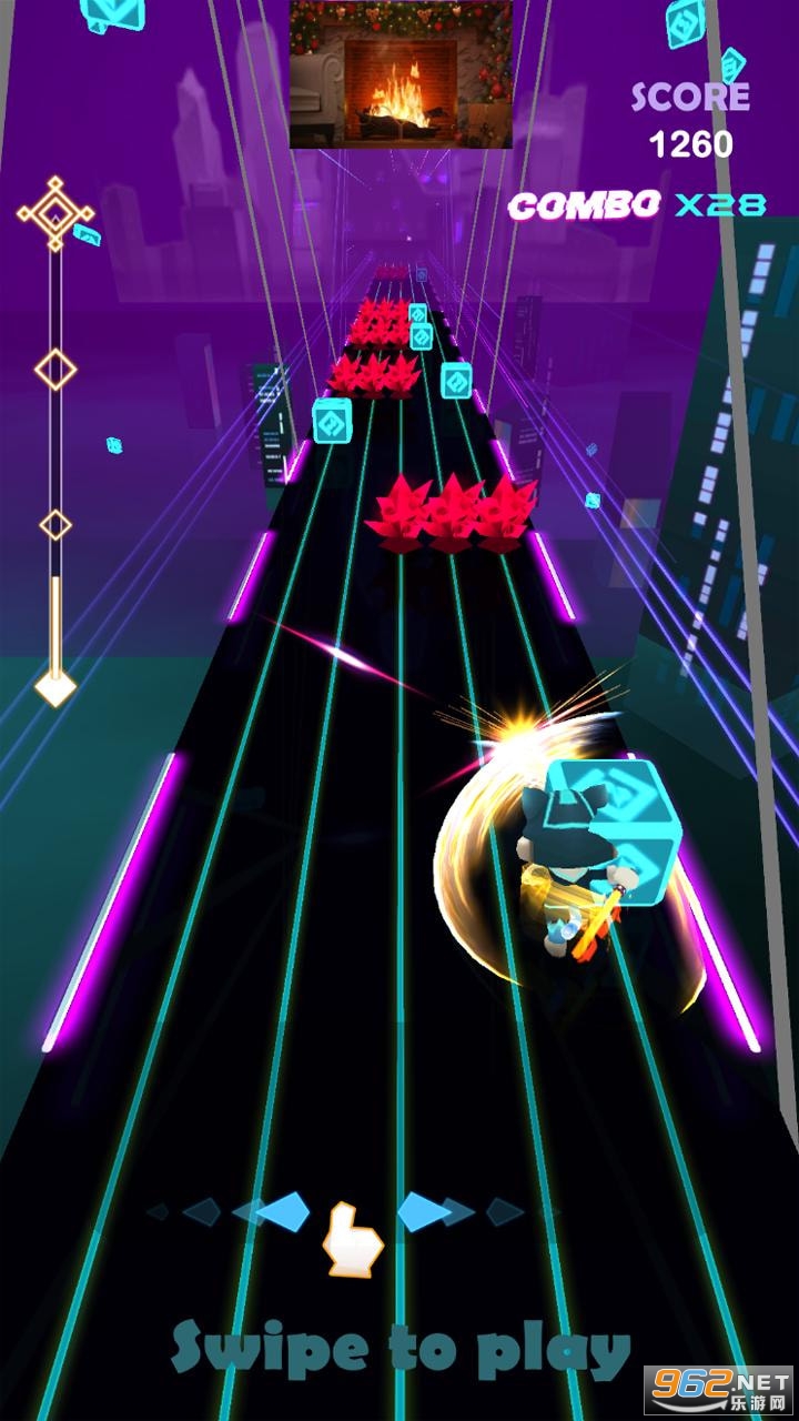 感受节拍的律动,向左或者向右滑动,避开路上的所有障碍物,并挥动手中的武器切开方块;