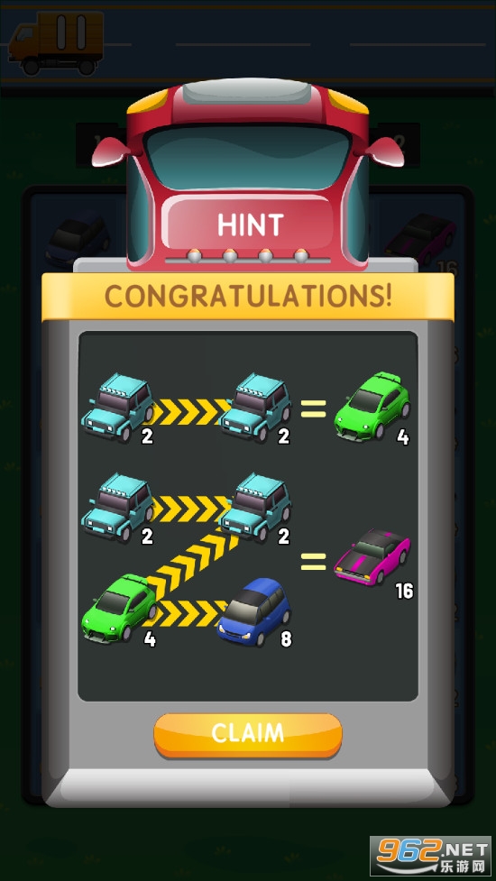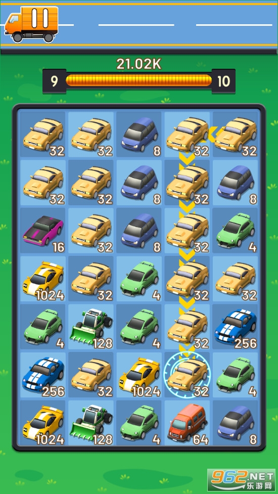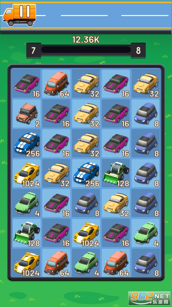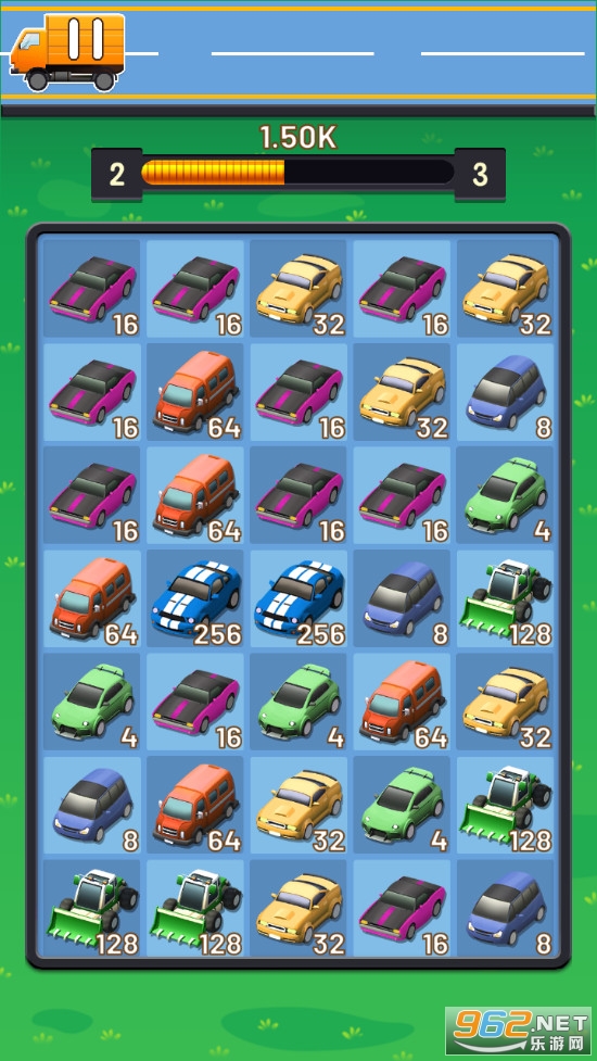 趣味的合并游戏,这些合并的物品变成了汽车,相同的两辆汽车合并可以获得一辆新的汽车,汽车上有着数字,类似2048,一次可以合并多个相同的汽车,喜欢的朋友可以下载试试。