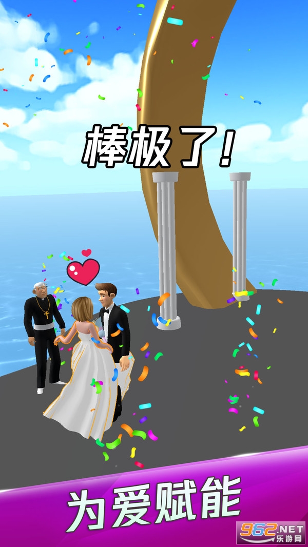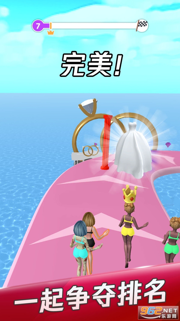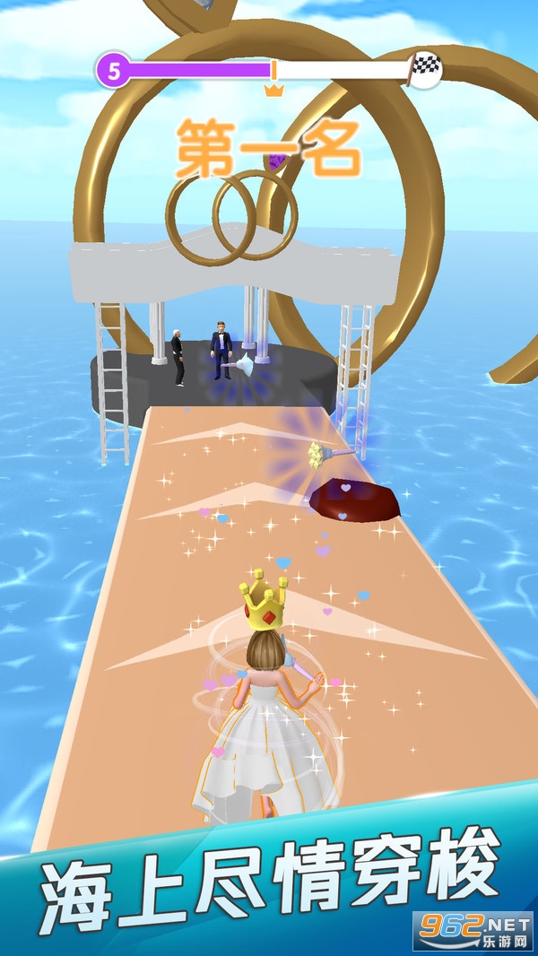 新娘们你追我赶,大家都想最快到达终点,但率先到达终点不是唯一的目标,我们还要想办法去获得更多华丽好看的服饰,还有各种精美的装饰物,你要吧新娘打扮得漂漂亮亮的才行。