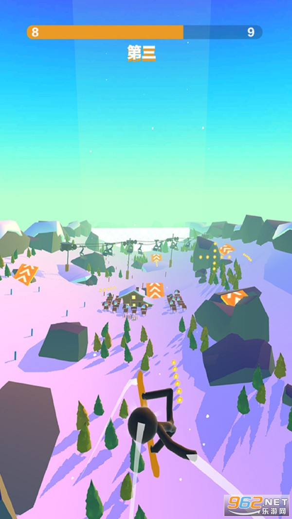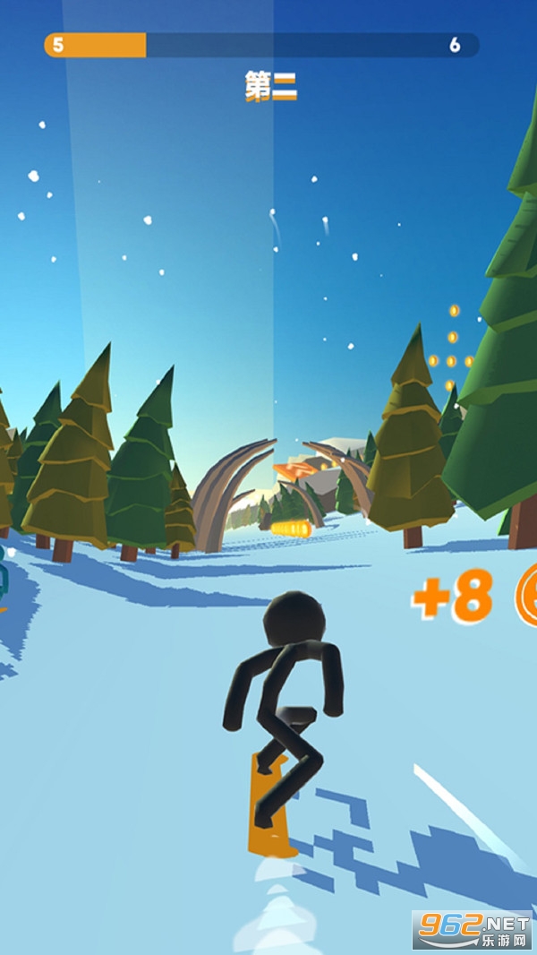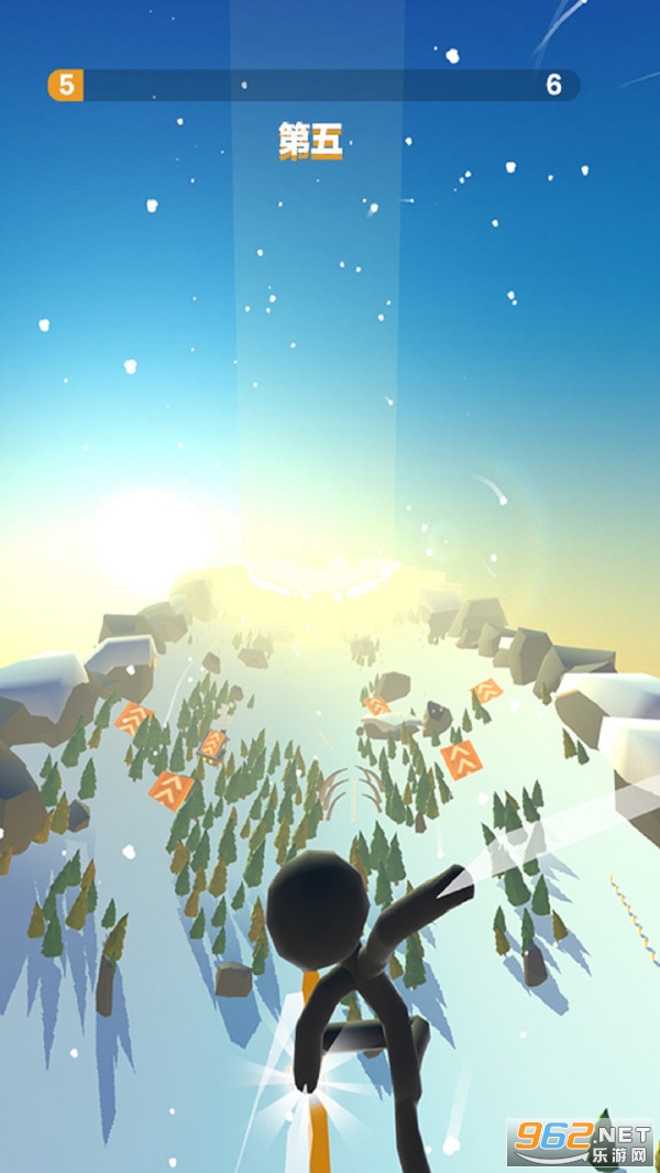 1、简约火柴人风格的游戏画风,感受非常刺激好玩的滑雪乐趣;