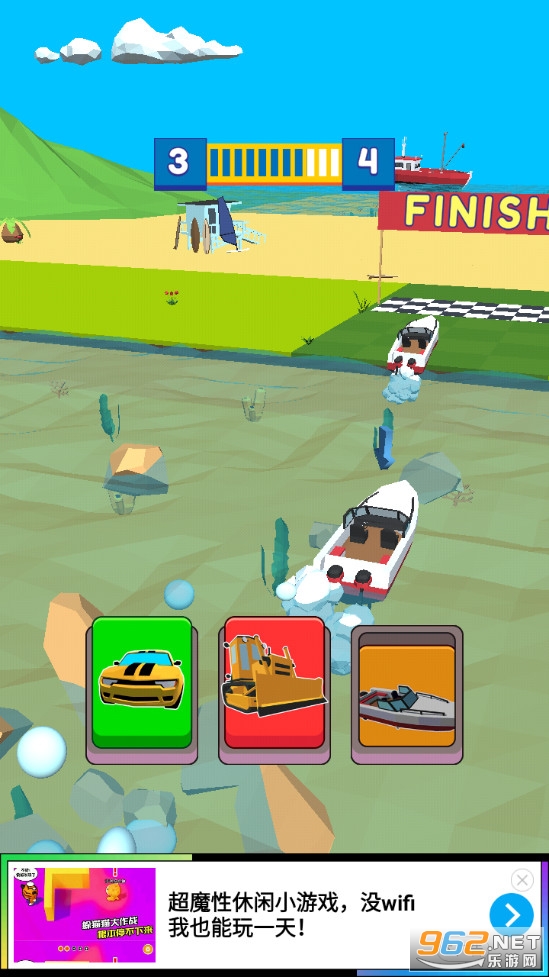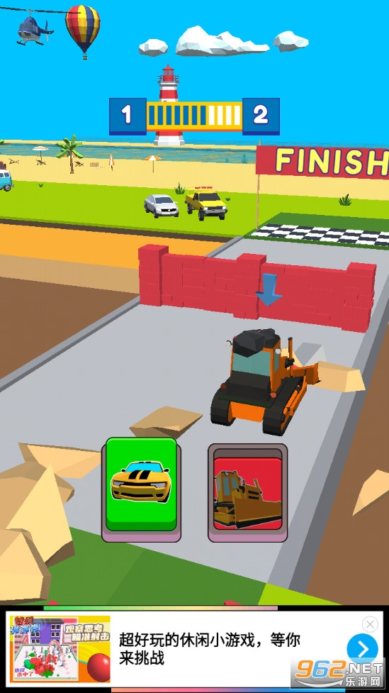 趣味的闯关游戏,游戏比较考验玩家的反应能力,遇到不同的道路选择合适的交通工具,抢先到达终点,比如好路用汽车,障碍物用推土机,河流用轮船,裂缝中飞机等等,喜欢的朋友可以下载试试。