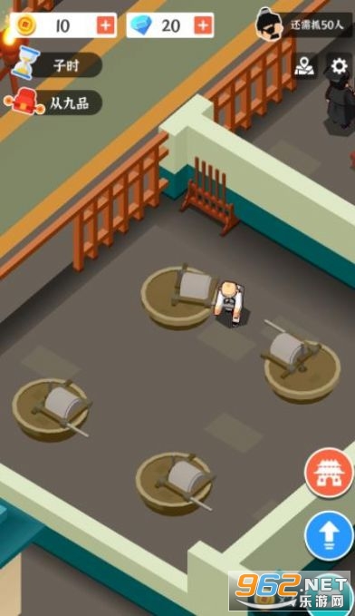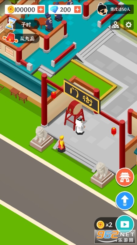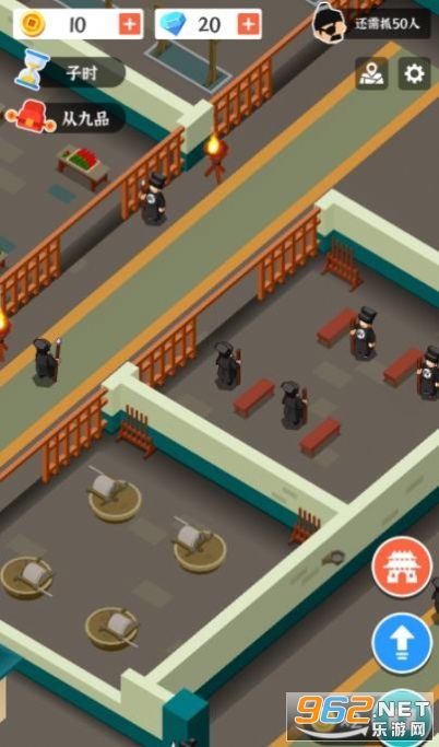 1、根据游戏提示进行判案,升级衙门建筑改造犯人,不断升阶官品。