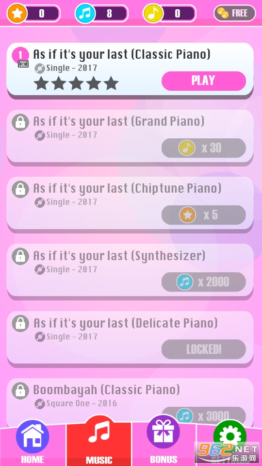 1、blackpink游戏钢琴块有着所有blackpink的歌曲,节奏超快,同时也包含了超多热门单曲
