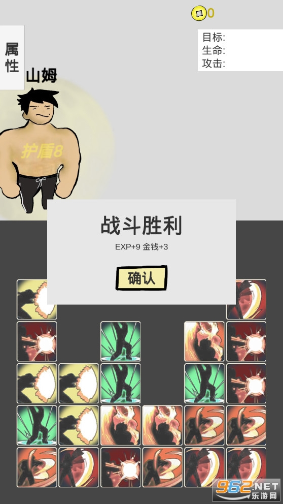游戏主角“山姆”被忽悠成勇者踏上去消灭大魔王的道路,讲述了一段有趣的故事(故事纯属架空世界)。玩家只需要简单的点击消除方块块,就能完成“山姆”的属性升级以及战斗的操作。“山姆”最终能否消灭大魔王?