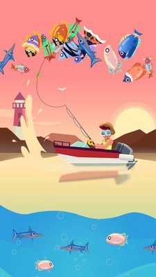 3、放你的线,钓尽可能多的鱼!改善你的钓鱼线去更深,并捕捉更多的鱼,在深海中发现了新物种,升级你的鱼竿来钓更多鱼。