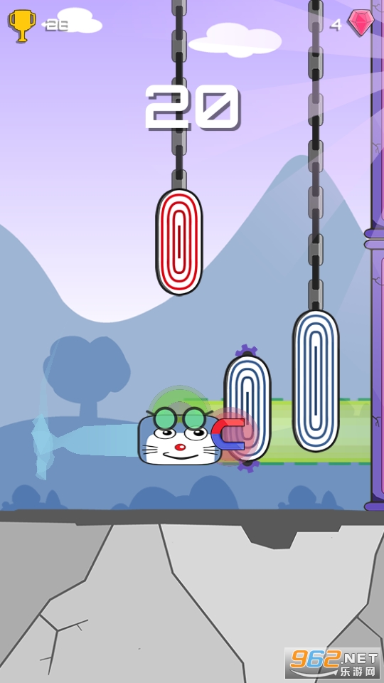 游戏中的角色不断的进行上下滑动,玩家需要选择合适的时机控制好角色通过撞击的方式进行闯关,丰富的关卡,预判好方位,不要落空哦。