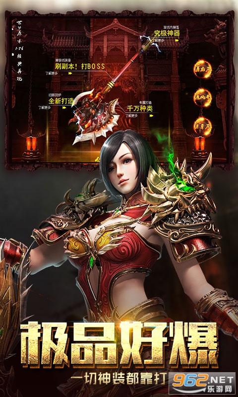 蓝光级画质,流畅操作竞技,身临其境的战斗体验;千人同屏攻城,500VS500的激情对战体验,高自由度的战场设定,无锁定无红名,畅享即时PK乐趣。超高爆率、无绑掉落,全开放自由交易,助你一夜暴富。多重玩法妙趣横生,让你每时每刻嗨不停!