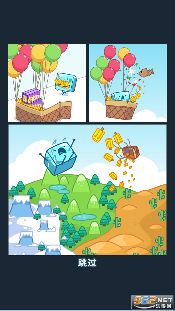打包了一堆黄金冰棍之后,CubeMelt便乘着热气球出发去看世界!