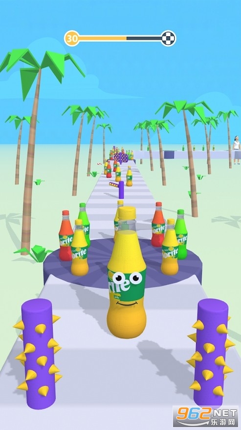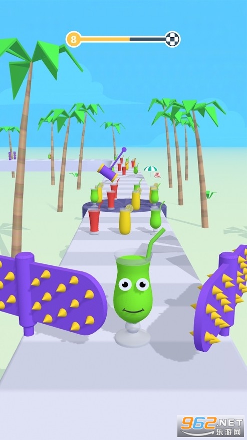 一款使用果汁来跑酷的游戏。您需要操纵一种颜色的果汁,吃相同颜色的果汁以增加自己的精力,同时避免使用其他颜色的果汁。如果遇到其他颜色的果汁,则尺寸会变小。当您到达终点时,您的汁液越大,您将获得的钻石越多。