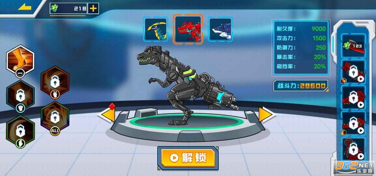 款动作格斗类游戏,玩家在游戏可以自由的搭配恐龙的技能跟配件等等,并且通过不但的格斗来获得更多的资源提升恐龙的作战能力,超刺激的打击感,喜欢的朋友可以来拼装恐龙格斗游戏体验.