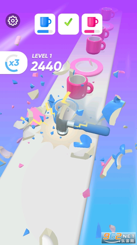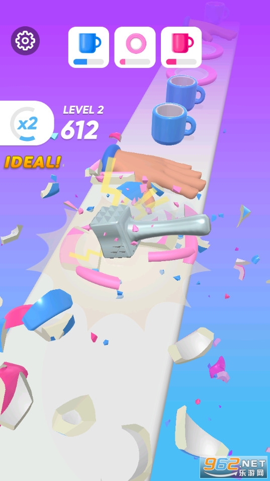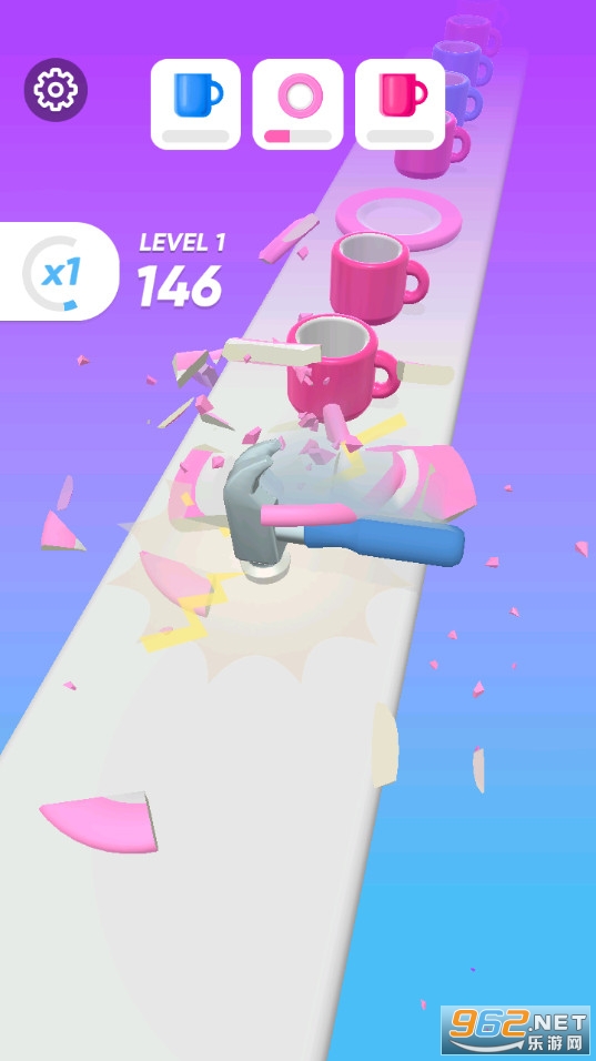 《砸碎一切3D游戏》是一款画面清新的破坏类发泄解压手游,游戏中玩家将使用锤子等道具去冒险,下面的平台上会摆放茶杯、盘子、灯座、花瓶等各种不同的东西,玩家可以点击屏幕让锤子下落去砸碎这些东西,注意有时候平台上会出现手,不要砸到了。