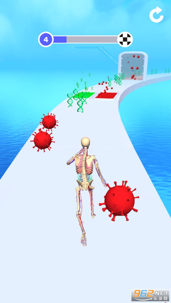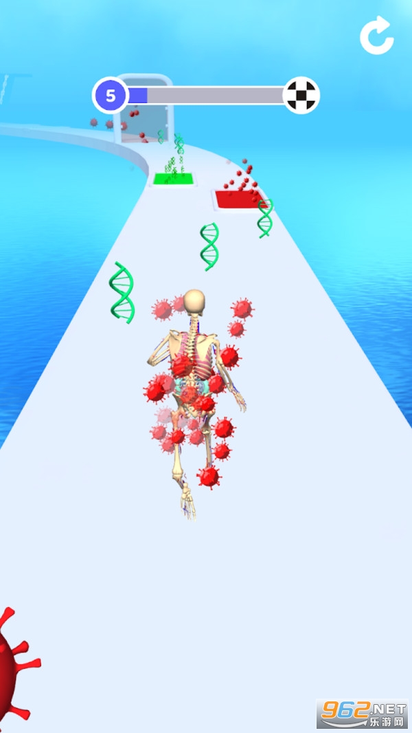 DNA我最强是一款十足魔性的跑酷闯关游戏,我们的DNA结构受到了损伤,导致成为骷髅人,现在需要通过跑酷闯关去收集DNA,让他完成进化成为人,尽可能的去收集到更多的DNA,同时要小心路上的病毒,病毒会在一定程度上阻止我们的进化。