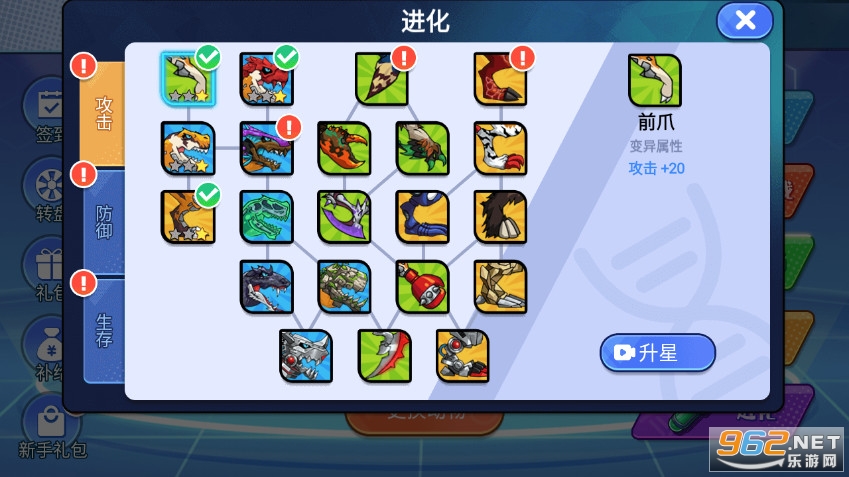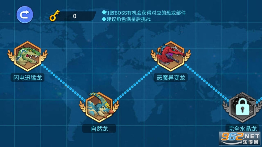 3、冒险闯关,解锁更多王者挑战、斗兽场等副本玩法,进化恐龙