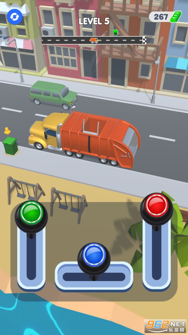 《垃圾车老司机》是一款模拟驾驶垃圾车处理城市垃圾的游戏,驾驶垃圾车去收取沿途垃圾箱里面的垃圾,不需要我们动手,垃圾车上有机械臂可以自动回收垃圾,我们只需要操控机械臂就ok了,大家可以一条街道一条街道的去收集垃圾,清理完所有的街道一天的任务才算真正完成。
