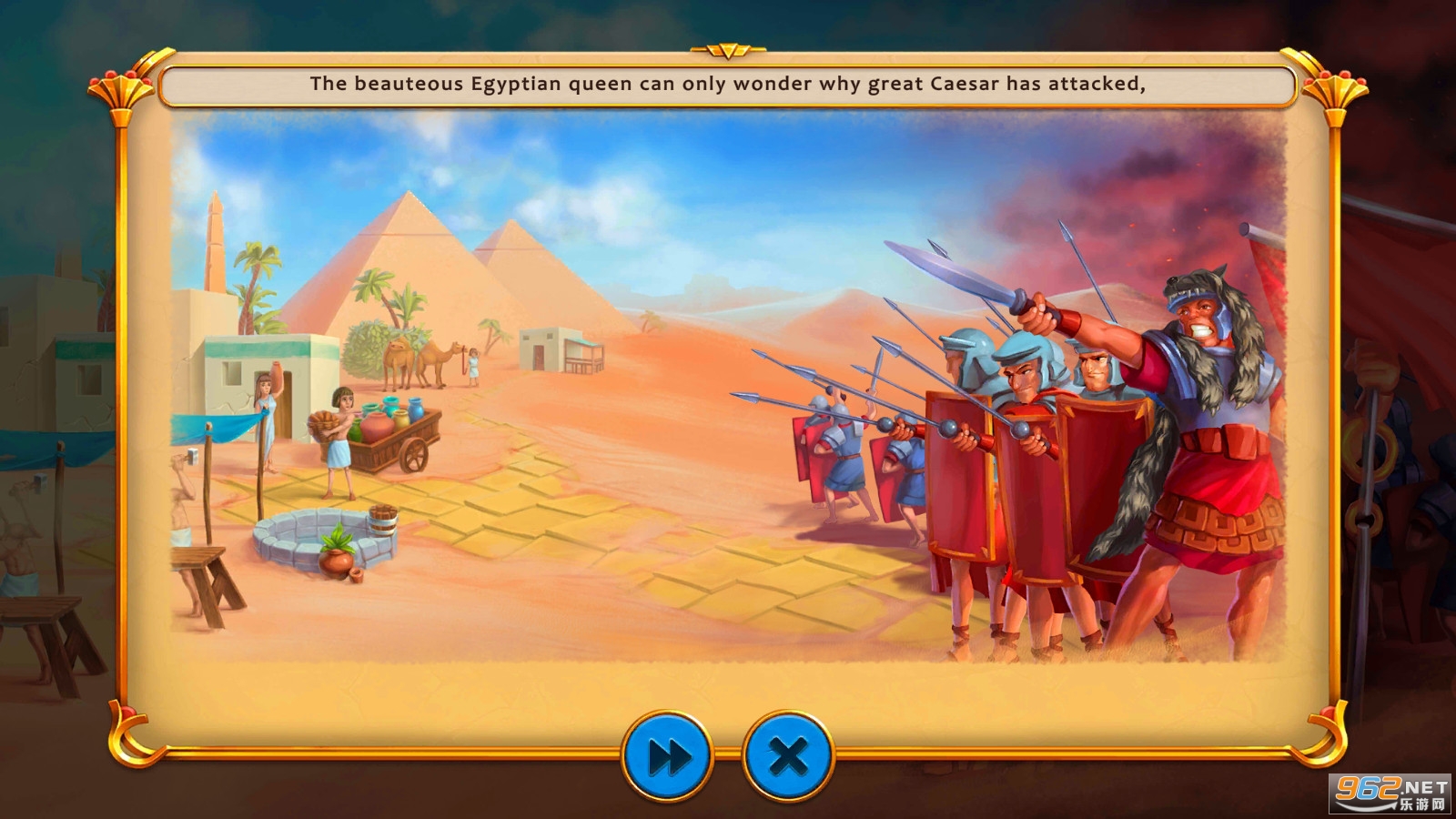 埃及人民在克利奥帕特拉女王的统治下享受着和平与繁荣的生活,直到罗马军队抵达孟菲斯,其目的只有一个--征服整个山谷!埃及唯一的希望在于克利奥帕特拉,但她如何说服凯撒停止战争?埃及唯一的希望在于克里奥帕特拉,但她如何能说服凯撒在他们之间的敌人的军队中停止战争?答案就在于一个闪亮的护身符的幻象,它有能力在梦中拜访人们。如果克里奥帕特拉能找到这个神秘的护身符,她也许能从凯撒的梦境中开始他们的和平谈判 在这个令人兴奋的新时间管理游戏中,与埃及艳后一起穿越尼罗河谷,遇见神话中的生物和埃及诸神,为确保埃及的未来而赛跑!
