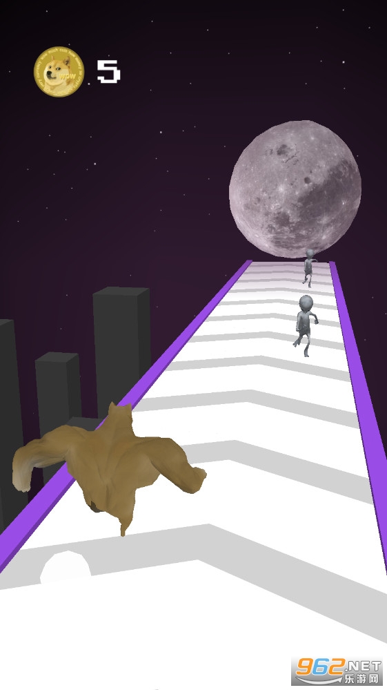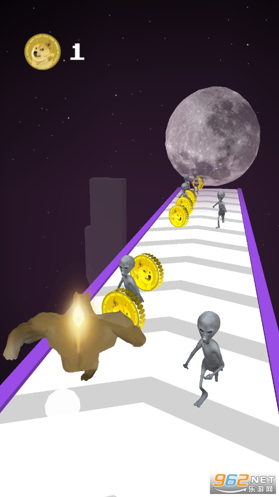 《狗狗币冲冲冲安卓版》是一款非常的好玩的休闲闯关类游戏,我们化身成了最近很火的狗狗币的形象,并且我们可以操控他进行跑酷闯关,我们的狗狗币想要飞上月球,所以我们必须帮他避开在赛道中的外星人,否则狗狗被抓到就会导致游戏的失败了!
