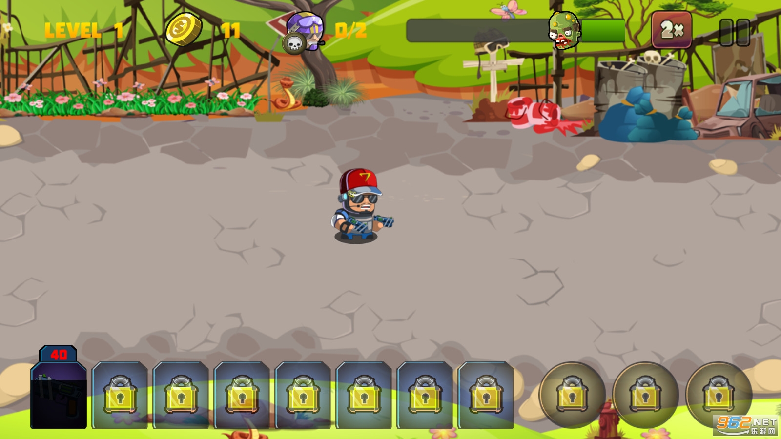 玩家控制角色,抵御僵尸的进攻,保护这片草坪;