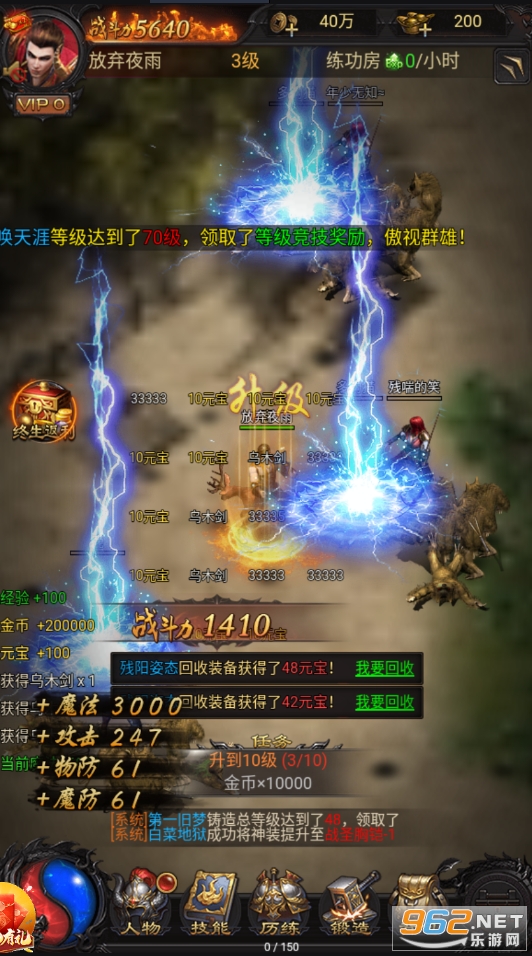 无限打怪的方式,击杀小怪就可获取高额的经验值,可轻松升级;