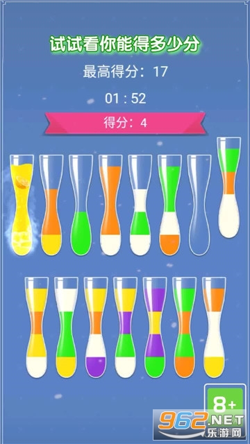 1、你的任务就是将不同类型的果汁进行分类,将所有相同颜色的果汁倒在一起;
