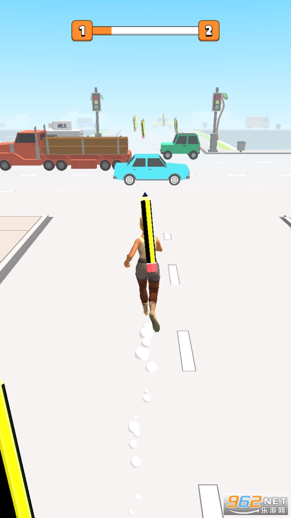 《画线过马路》是一款闯关解谜类游戏,将跑酷闯关和画线解谜完美结合在一起,我们需要通过闯关来收集得到更多的铅笔,铅笔越长就可以画出越长的线,在马路上画线让铅笔侠安全过马路,注意马路上汽车的位置和行驶的方向,尽量保留一定的安全距离,不然很容易被撞到。