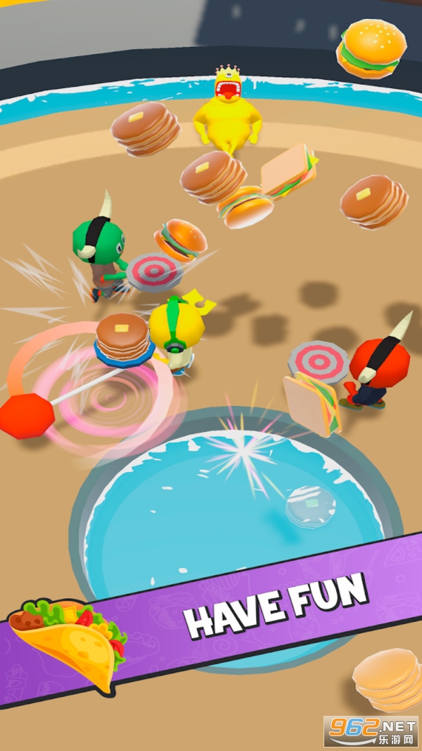 《喂饱国王》是一款非常魔性的休闲闯关游戏,用盘子去收集更多的美食去喂饱你的国王,国王的饭量是很大的,所以需要很多食物才能吃饱,食物会从平台的正中心吐出来,在收集这些美食的时候,我们也要格外的小心,不要掉入进去更不要被平台上的各种道具伤害到。