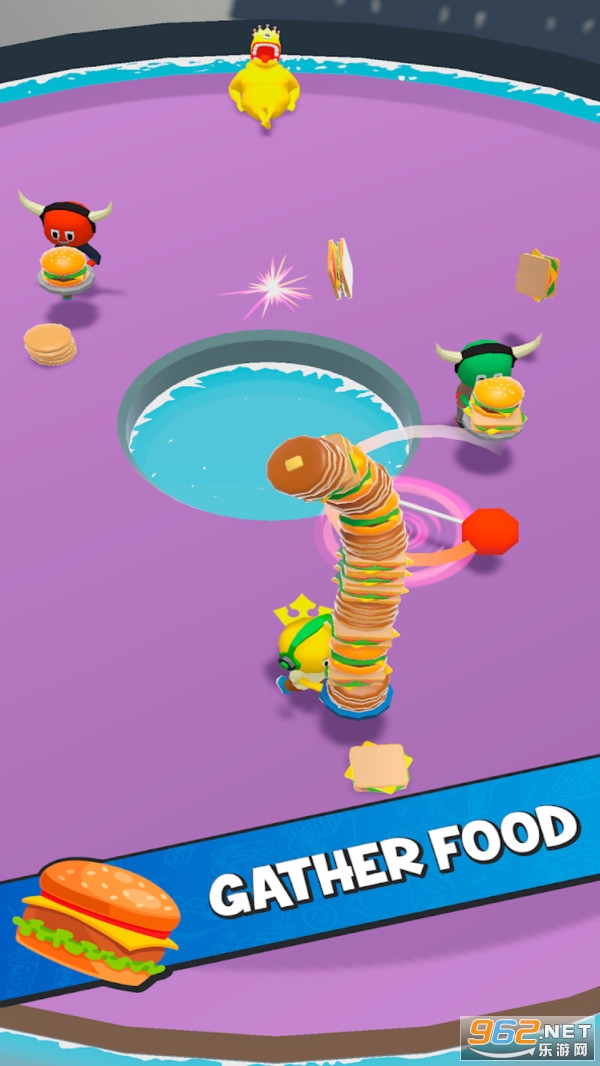 别样的吞噬休闲类游戏,需要先将食物收集起来,然后送到国王的嘴中,一次性收集食物的数量不受限制,可以随意去收集,屏幕的右上方会实时记录国王的吃饱程度,达到百分之百才算挑战成功。