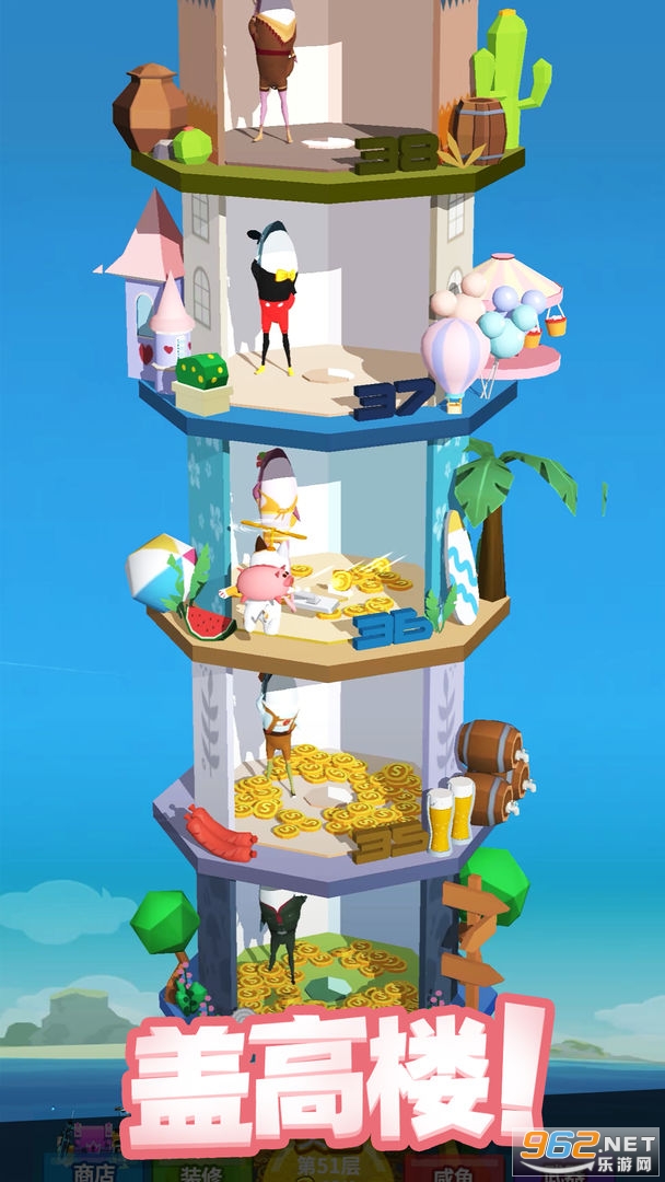 3、不断解锁出新的资源来继续搭建更高的楼层。