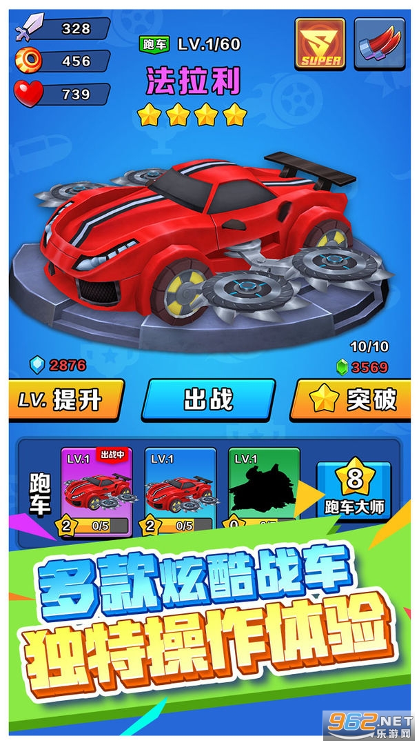 3、不仅仅有现实中的跑车和坦克,甚至还有我们原创的全新种类战车可以使用。