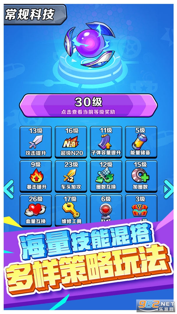1、海量技能混搭,多样策略玩法,由道具所带来的技能效果让每一局都是全新的体验。