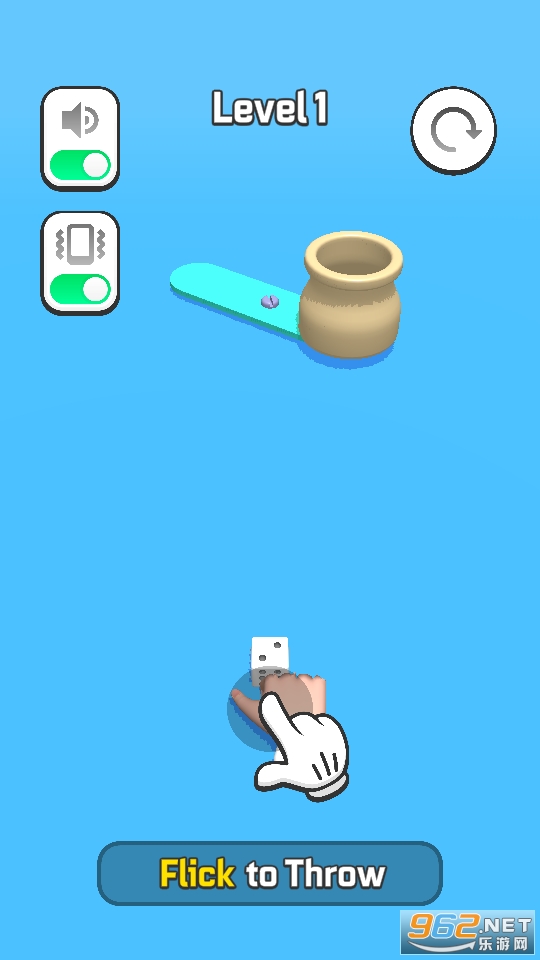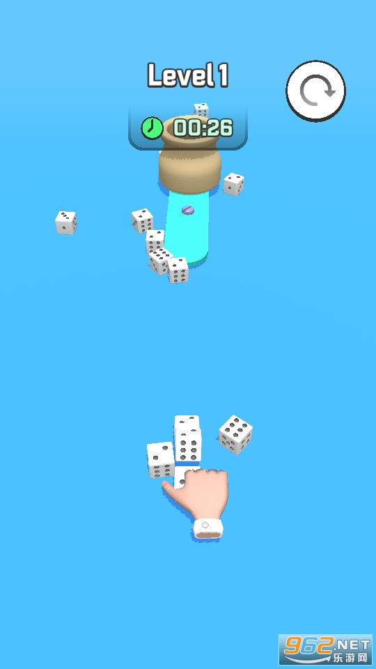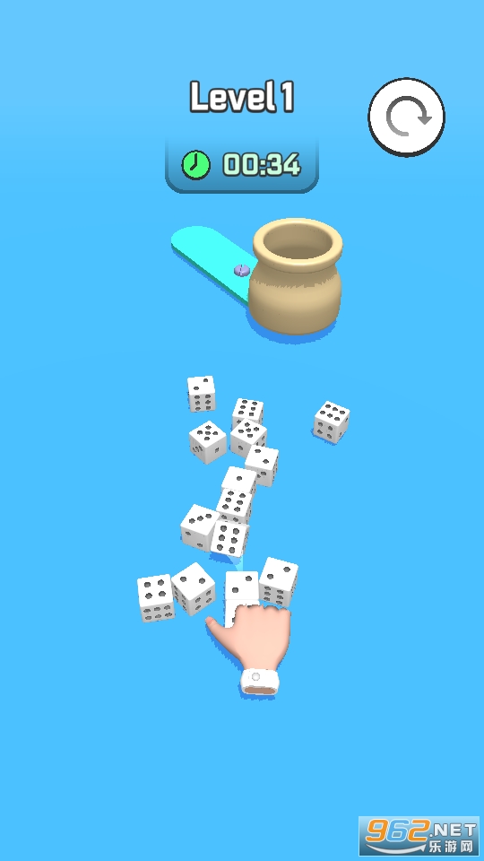 画面非常简约,但是玩起来难度真的很高的一款休闲游戏,玩家需要对距离以及方向进行合适的预判,想办法把骰子扔进指定的地方,是有计时的哦!