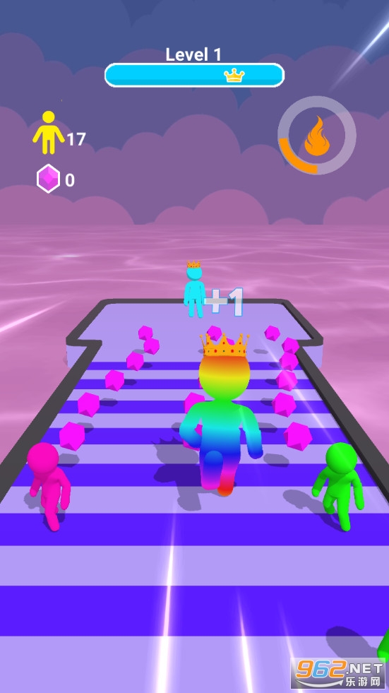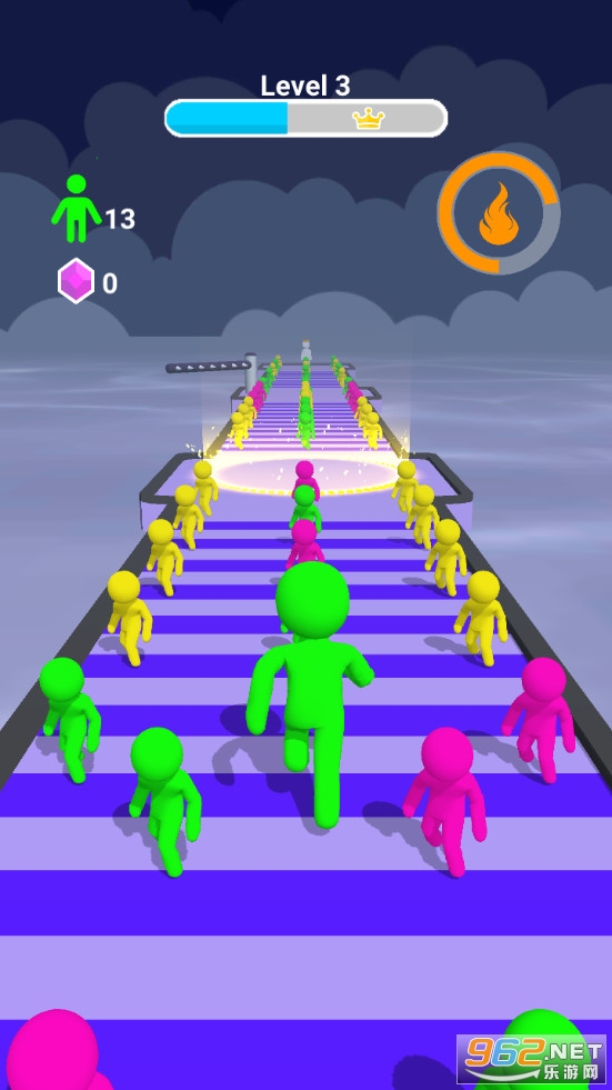 《果冻巨人冲游戏》(Color Run Crowd Switch)是一款画面清新的敏捷奔跑类休闲手游,游戏中玩家将控制一个果冻人奔跑,可以收集与之颜色相同的果冻人来增加角色的大小,注意经过一些变色区域后果冻人会变换成其他的颜色,到达终点后和巨人果冻boss对战。