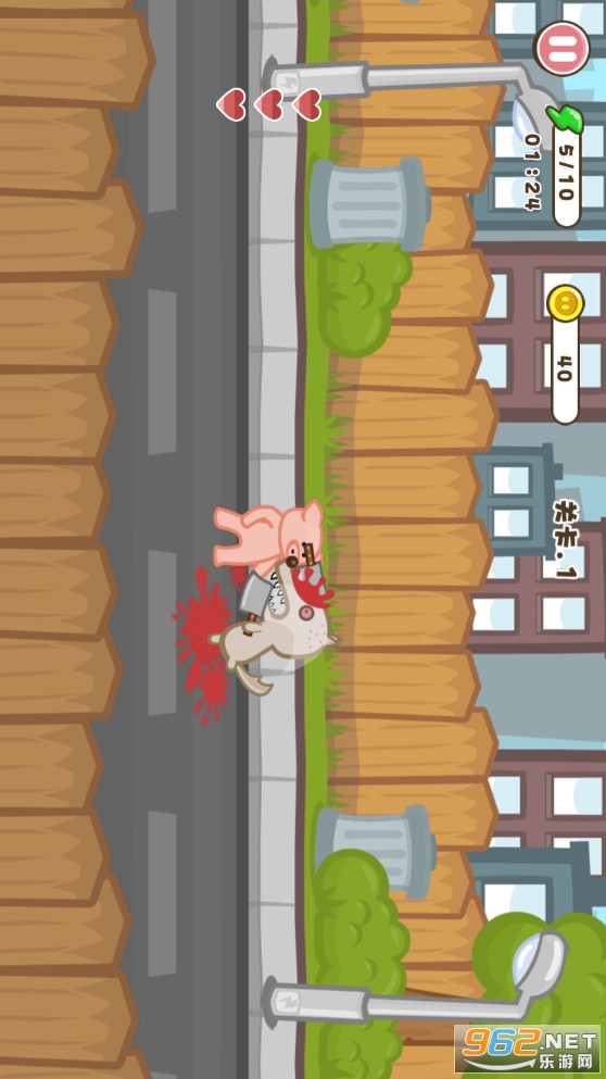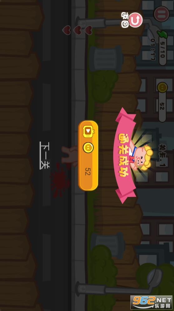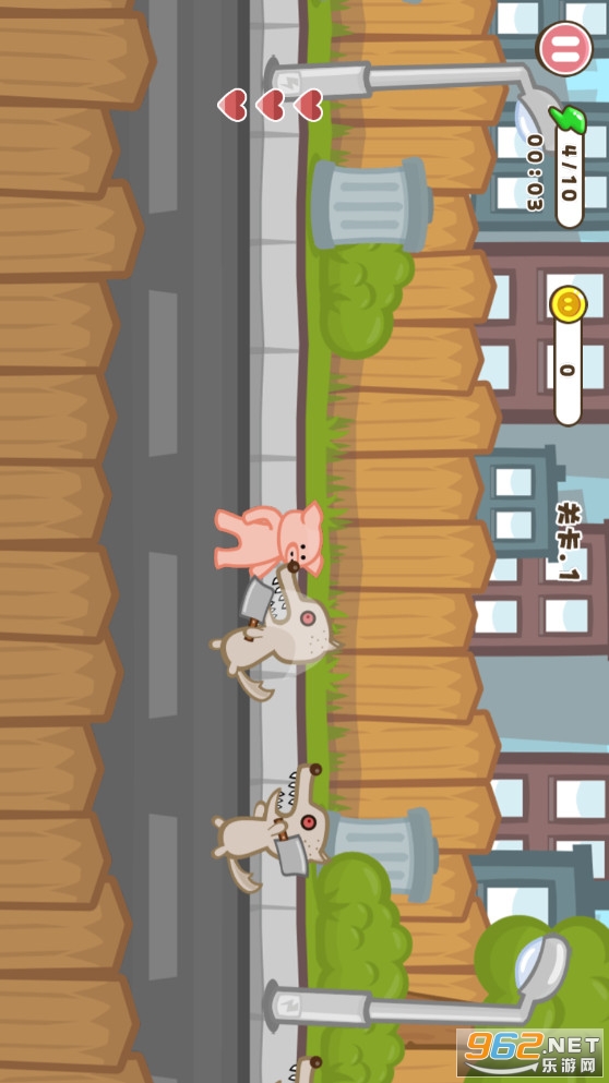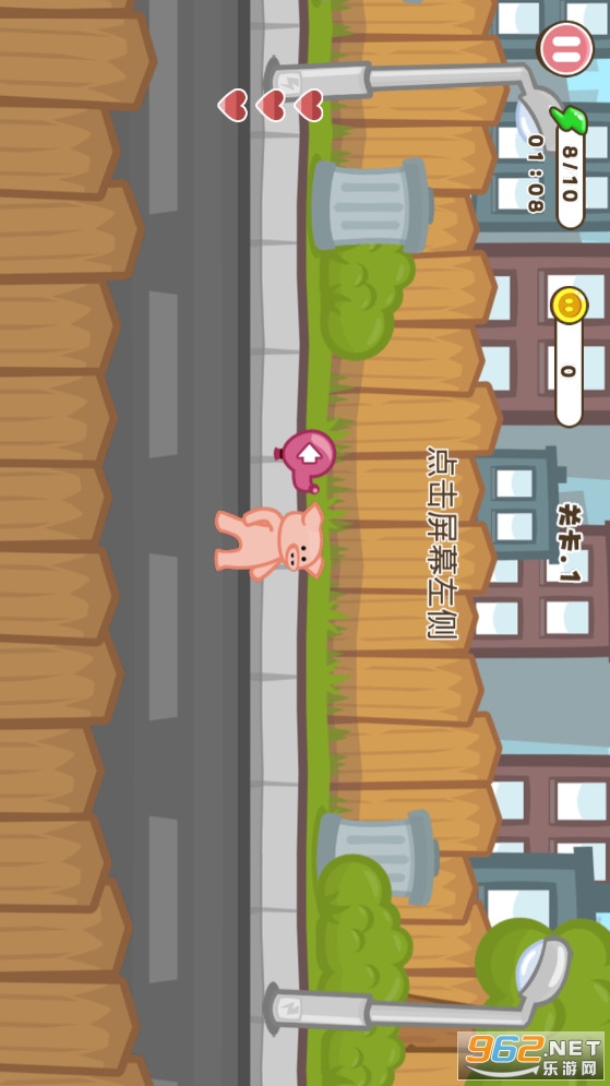 2、每个关卡解锁独立的故事,猪猪走在路上,跟随箭头指示拳打脚踢;