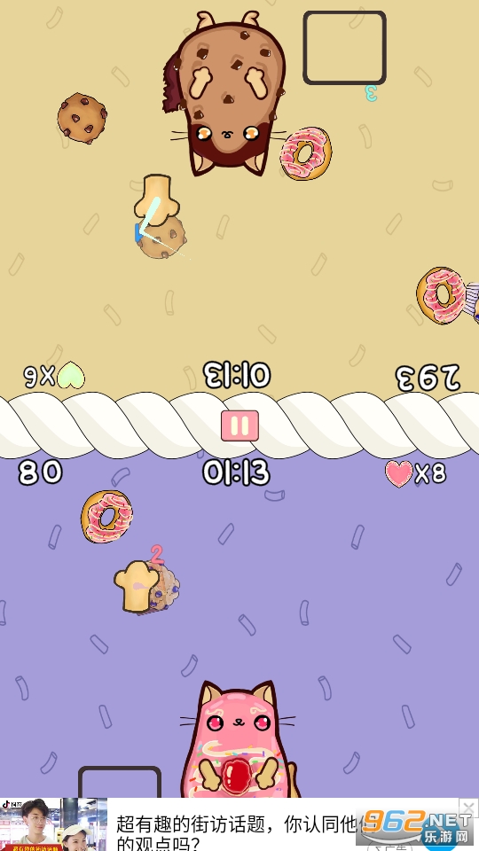 甜果猫大战游戏是一款非常可爱的休闲小游戏。玩家可以选择与朋友或是电脑AI竞技,玩家的目标就是要收集比对方更多的甜点,不过在漫天降落的甜点之中也混入了令人头痛的老鼠,会减少你的奖励哦。游戏的玩法并不困难,而且还支持玩家与好友同屏共玩,喜欢的话就赶紧下载吧。