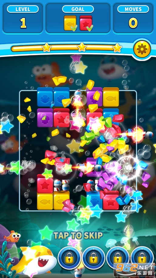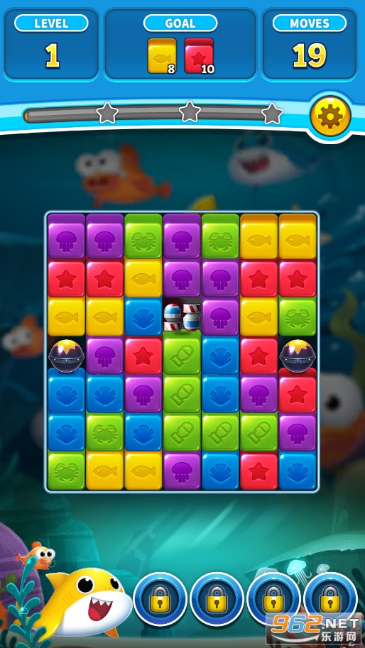 一款非常有趣的海洋题材爆炸消除游戏,游戏中你将完成一系列有趣的消除关卡,游戏有着有趣的点击消除玩法,还有着多种道具,和小鲨鱼一起进行冒险,还有着超多的特殊方块,推荐给喜欢消除游戏的玩家。