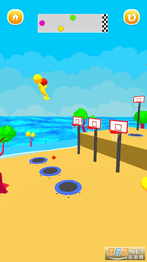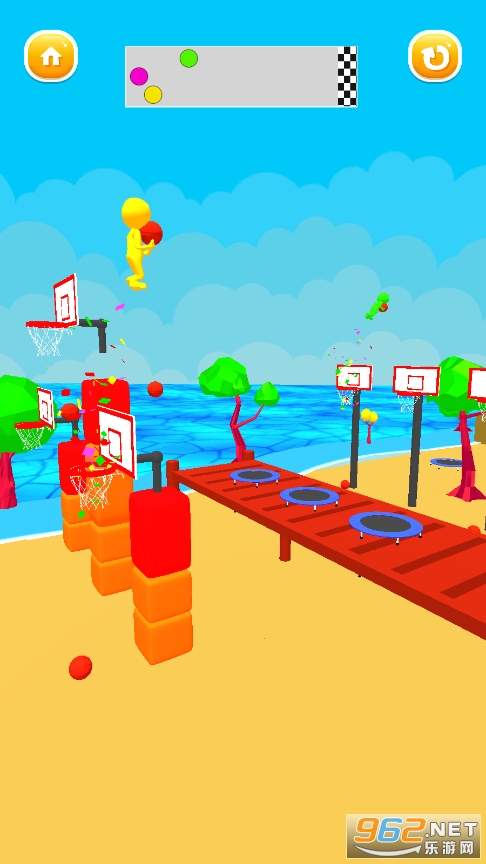 轻触将篮球抛到最佳位置,尽可能扣篮。转到下一级。