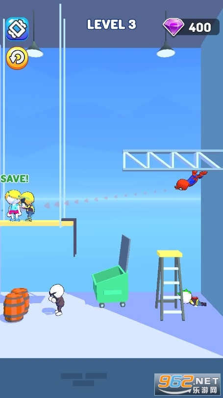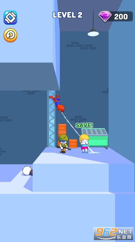 超级好玩的休闲闯关游戏,让你也能过一把蜘蛛侠的瘾,有很多的场景不断出现,每一个新的场景就代表着一个全新的关卡,想办法使用你的技能去消灭所有的敌人,并将心爱的女孩子拯救出来。