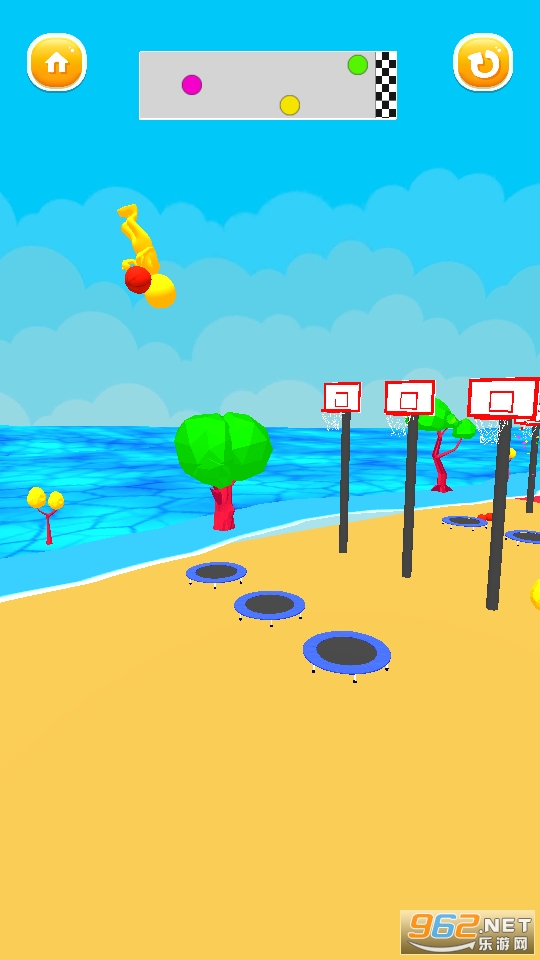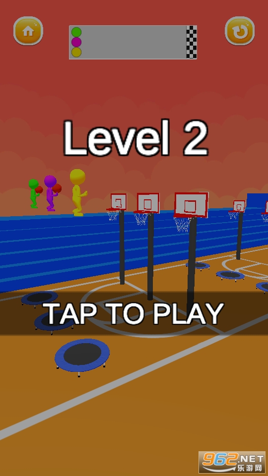 轻触将篮球抛到最佳位置,尽可能扣篮。转到下一级。