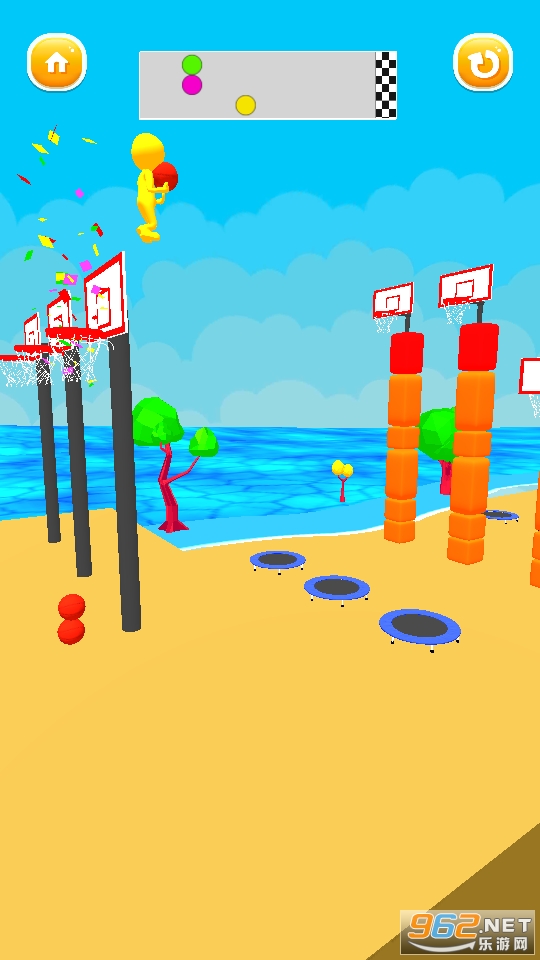《Ball Dunk 3D游戏》是一款非常有趣的以投篮玩法为核心的休闲游戏,玩家在游戏中的主要任务就是投篮,只有投进篮筐之后你猜会被传送到下一个地点,谁先投完所有的球就会获得胜利,只有成为第一名才能闯关成功了。感兴趣的话就快来下载吧!